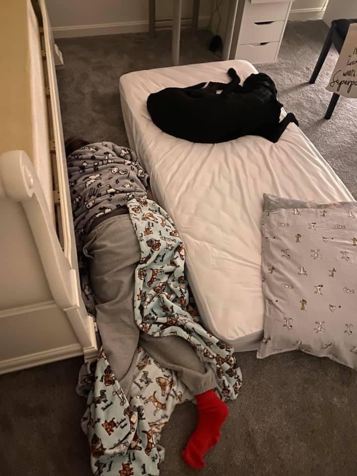 4. Zoey waited until everyone was asleep to come into my room, wait for me to pat the bed, giving her permission to sleep in the bed with me. At some point, she was curled up, sound asleep on my bed, and I was on the floor. That gave my family and me a good laugh.