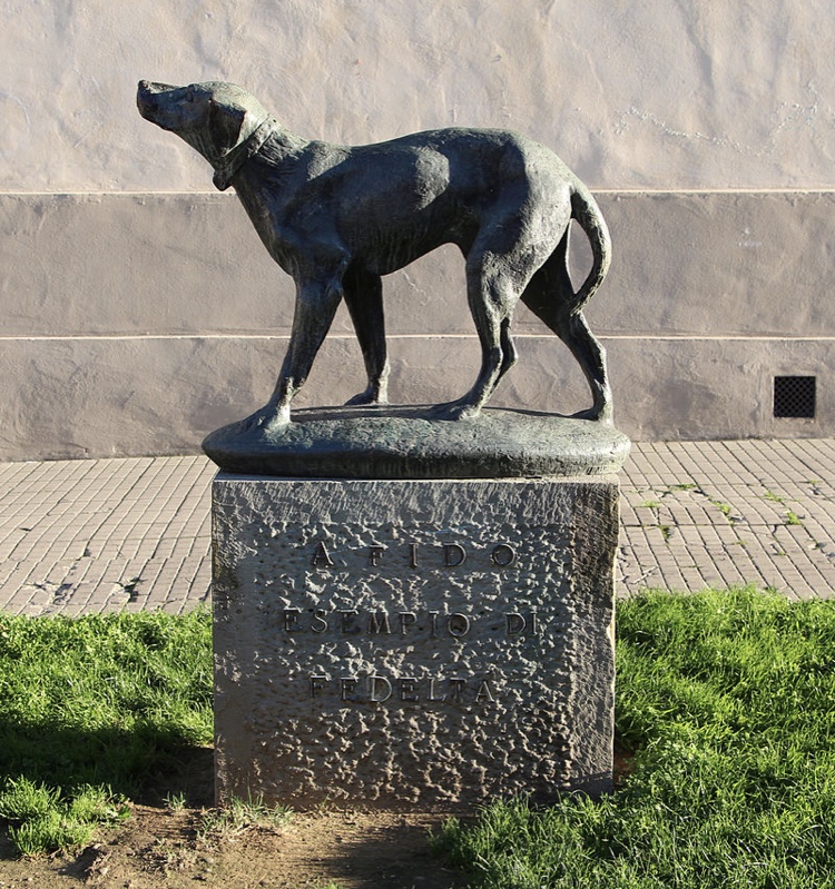 The other dog I discovered in my “research” that made the name “Fido” famous lived in Italy during World War Two. This part pointer would join his owner Carlo Soriani on the walk to and from the bus stop each day. One day, the brick factory where Carlo worked was bombed and he was killed. Fido showed up at the bus stop as always but his owner never came. Fido lived up his name and faithfully went to the bus stop every day for years in the hopes that his owner might be there to meet him, until he passed away fourteen years later. Because of his incredible loyalty to his owner, Fido was memorialized and a statue was made of him in his hometown of Borgo San Lorenzo.