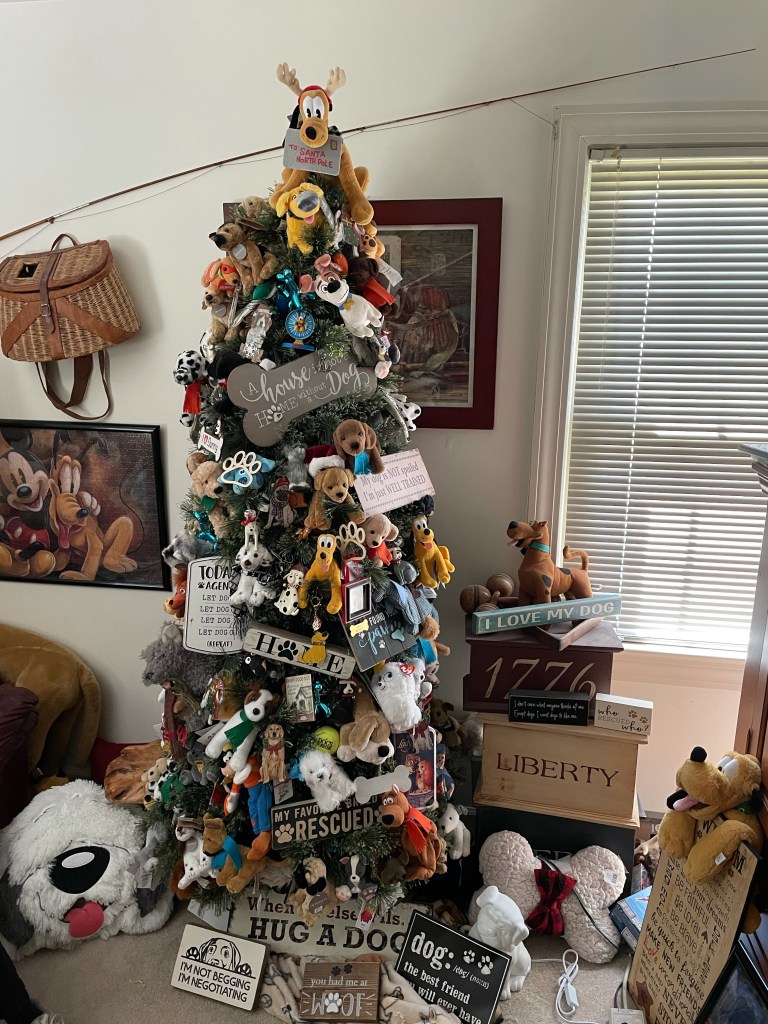 I don’t have OCD, but I can identify a little bit with the character of Monk. I admit I can be a little bit of a neat freak and a hoarder especially when it comes to my back room and my dog tree. Every time my mom and I see a little stuffed dog or a dog-themed ornament that we could add to the tree, we have to get it. Our tree is so full now with 177 decorations that you can’t see any Christmas lights or hardly the tree!Take a look at this pic of my updated dog tree and tell me what you think. I might be just a little OCD. My Mom and I love it so much, we keep it up all year round.