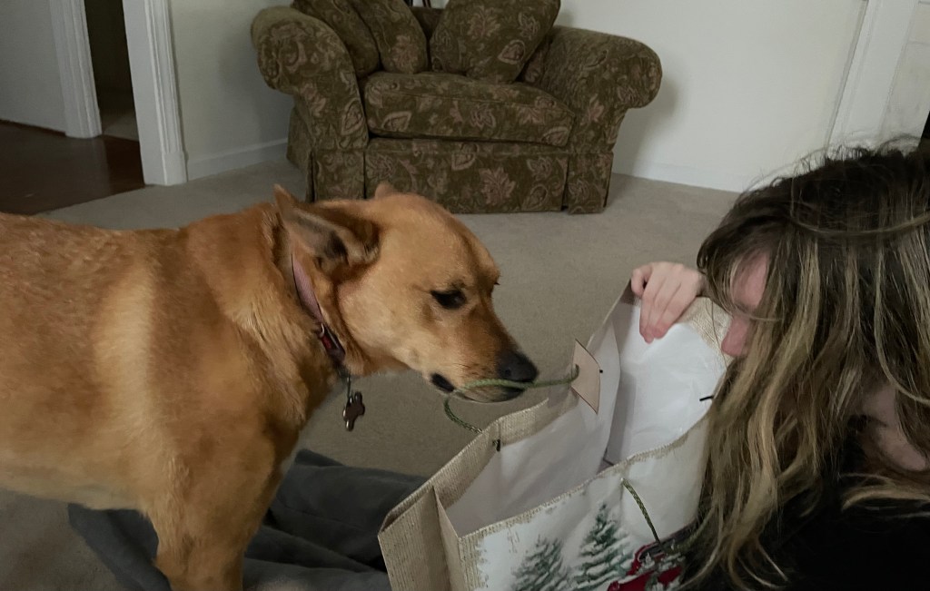 To top it off, Sunny came charging in the room to smell the blanket and the bag that it came in since it smelled like her two dogs! I want to thank this friend for the present and the laugh that I got from my dog’s reaction.